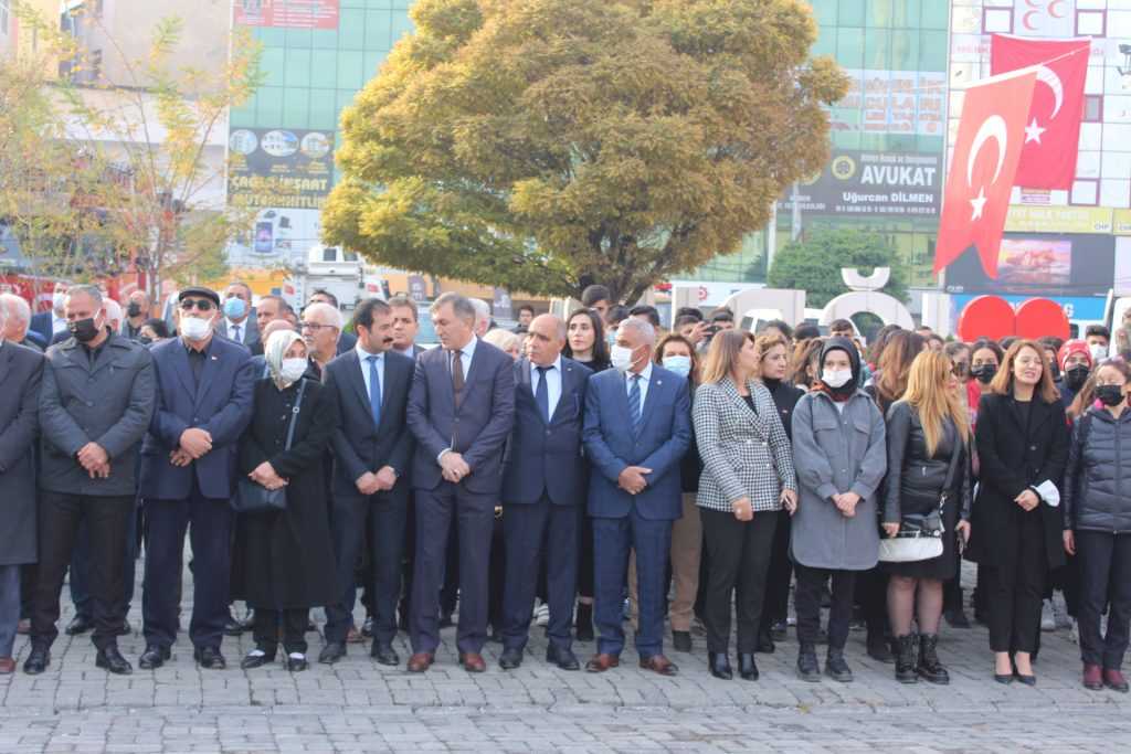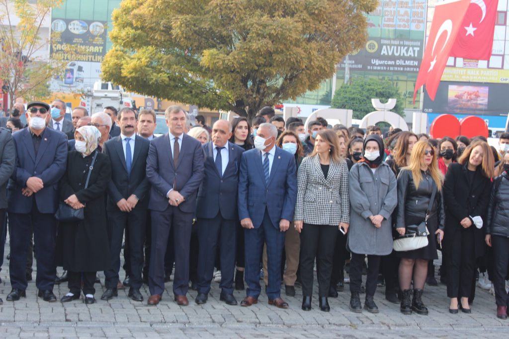 #10Kasım Atatürk’ü Anma Günü programları Atatürk Anıtı’na çelenklerin sunulması ile başladı.Saat 09.05’te çalınan sirenlerle birlikte saygı duruşunda bulunulmasına müteakiben İstiklal Marşı’mızın okunması ile bayrağımız yarıya indirildi.Atatürk’ü Anma Günü programı, çelenk sunma töreninin ardından Kültür Merkezinde devam etti. Programa odamızı temsilen yönetim kurulu başkanımız Kamil Arslan ve Başkan yardımcımız Özcan Akkuş katıldı.