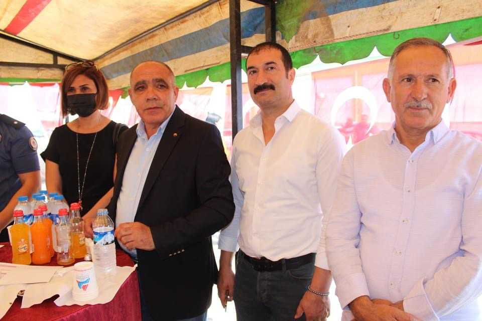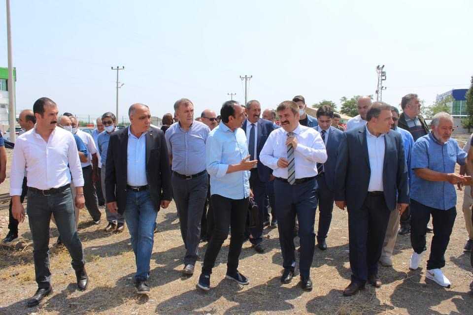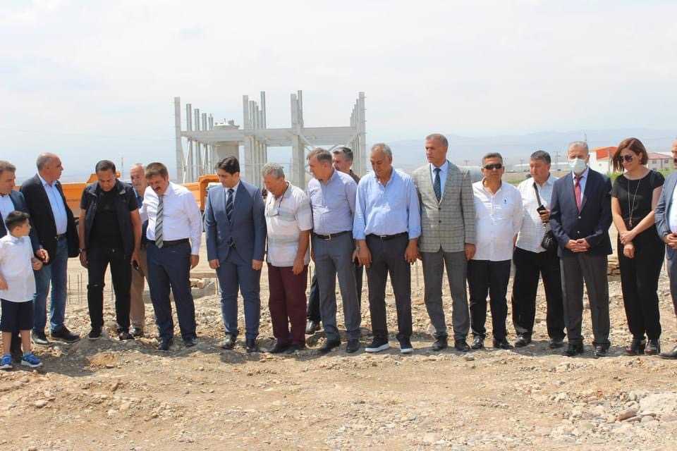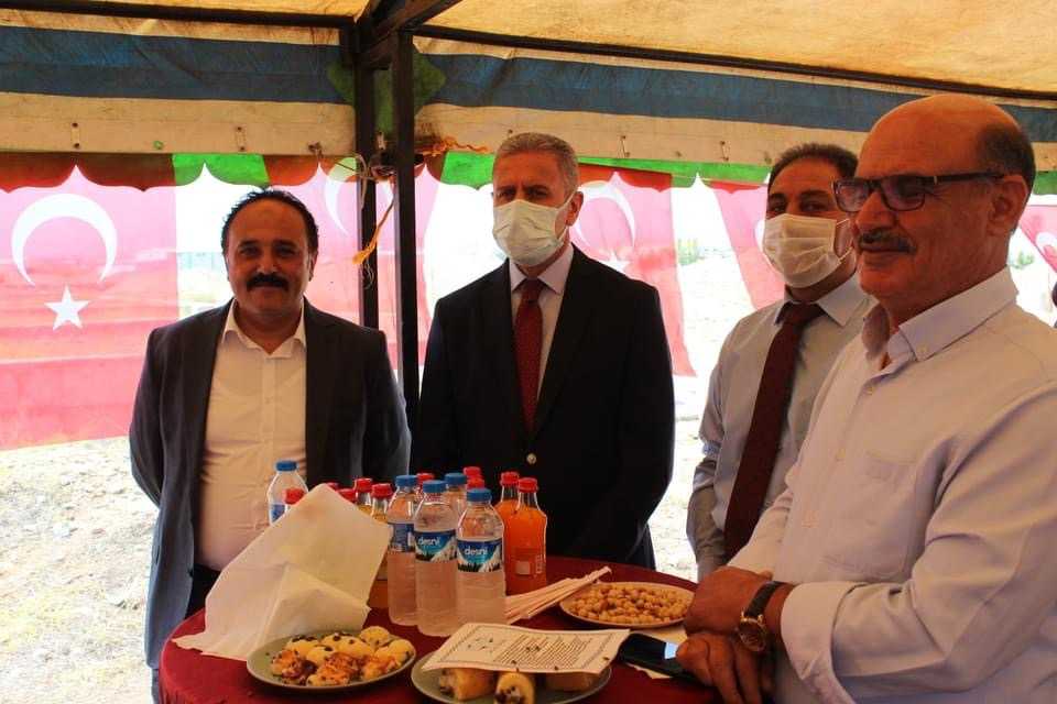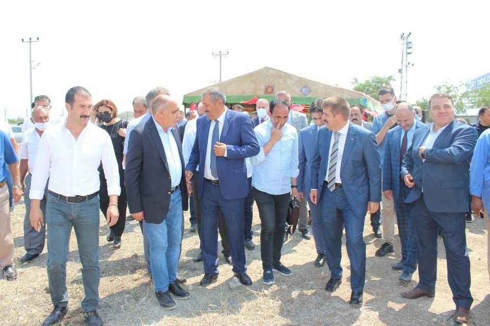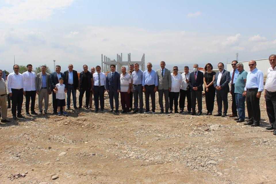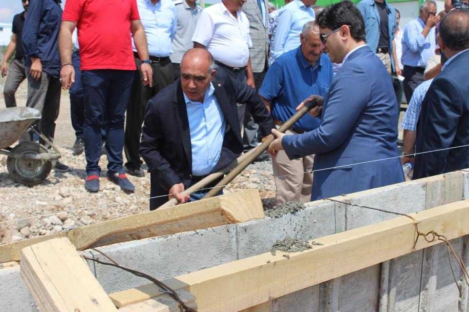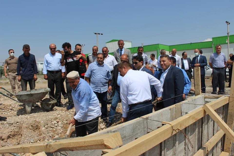 Konuşmaların ardından Sarıibrahim, Taraç ve beraberindekiler, harç koyarak fabrikanın temelini attı.