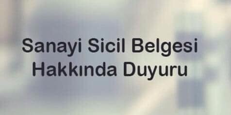 6948 Sayılı Sanayi Sicil Kanunu gereği Sanayi Siciline kayıtlı işletmelerin, 2020 yılına ait faaliyetlerinin yer aldığı Yıllık İşletme Cetvelini 30 NİSAN 2021’e kadar vermeleri gerekmektedir.Yıllık İşletme Cetvelini vermeyen işletmeler hakkında Aynı Kanun’un 9. maddesi gereği 1.730,00 TL. İdari Para Cezası uygulanacaktır.Bu itibarla, sanayi işletmeleri tarafından;(https://sanayisicil.sanayi.gov.tr) adresinden Sanayi Sicil Bilgi Sistemi’ne girilerek yıllık işletme cetvellerinin elektronik ortamda vermesi gerekmektedir.Üyelerimize duyurulur.
