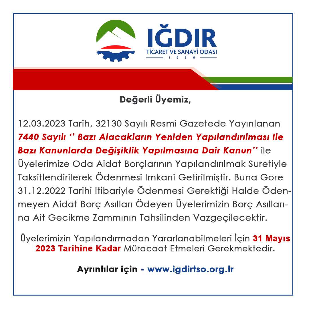 12 Mart 2023 tarih ve 32130 sayılı Resmi Gazete’de 7440 sayılı Bazı Alacakların Yeniden Yapılandırılması İle Bazı Kanunlarda Değişiklik Yapılmasına Dair Kanun yayımlanmıştır.
