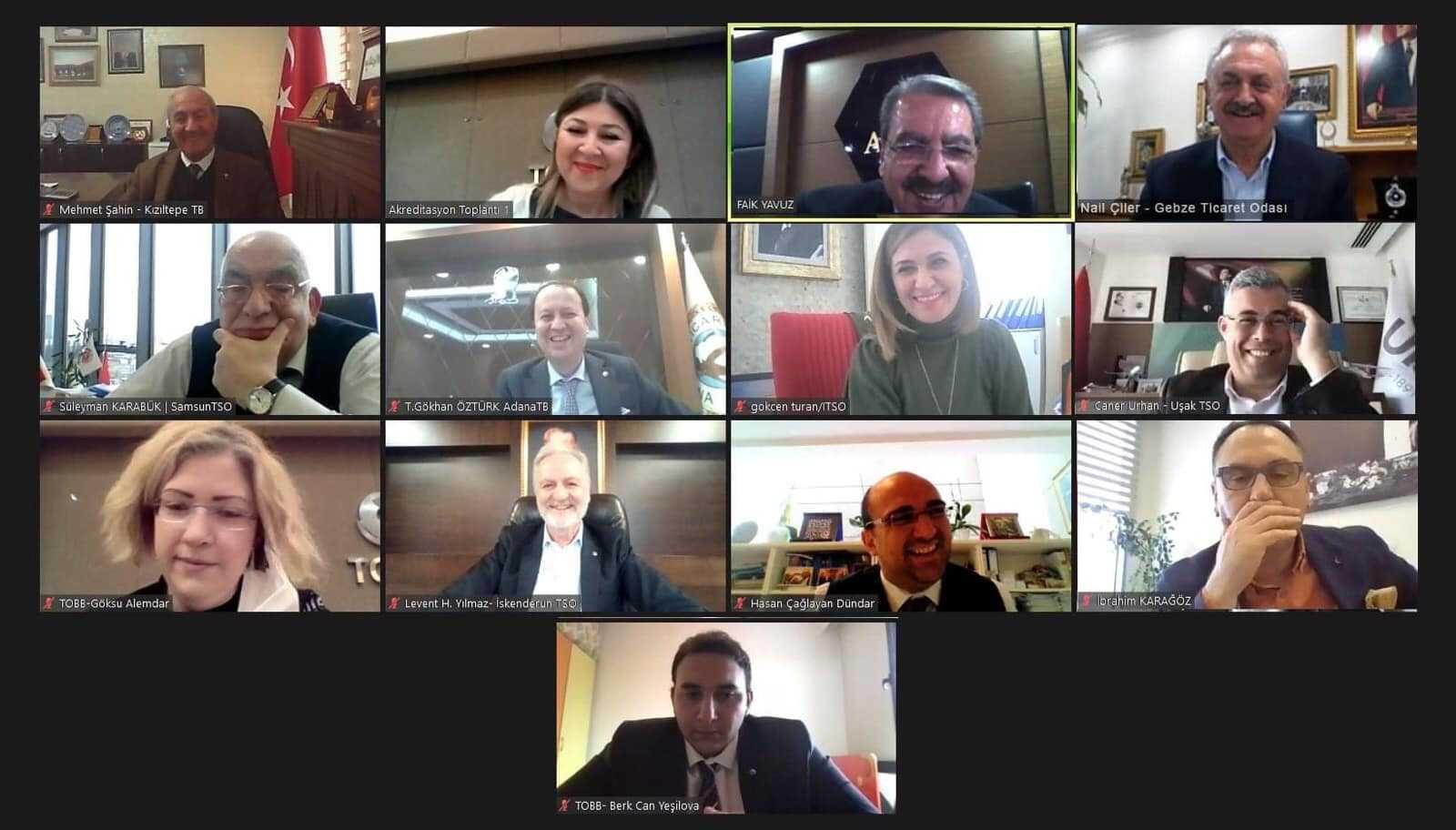 Oda/Borsa Akreditasyon Sistemi çalışmalarının yürütülmesinden sorumlu olan TOBB Akreditasyon Kurulu, Kurul Başkanı Faik Yavuz Başkanlığında video konferans yöntemiyle toplandı.