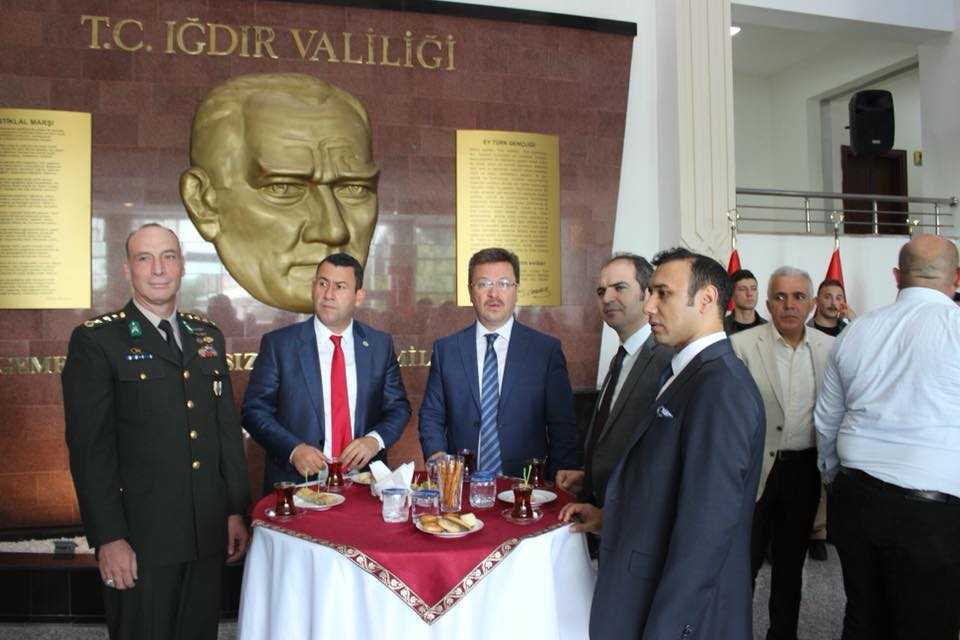 Iğdır Valisi Sayın Enver Ünlü Bayram Arife’sinde Iğdır valiliğinde Bayramlaşma programı düzenledi.Programa Iğdır MHP Milletvekili Sayın Yaşar Karadağ,Kurum amirleri ve vatandaşlar katılırken Odamızı temsilen Meclis Başkanımız Tahir Talay,Meclis başkan yardımcımız Murat Oba,yönetim kurulu üyemiz Celal Güneş ,TOBB delegesi Zeki Yücebaş ve Genel sekreter Gökçen Turan katıldı