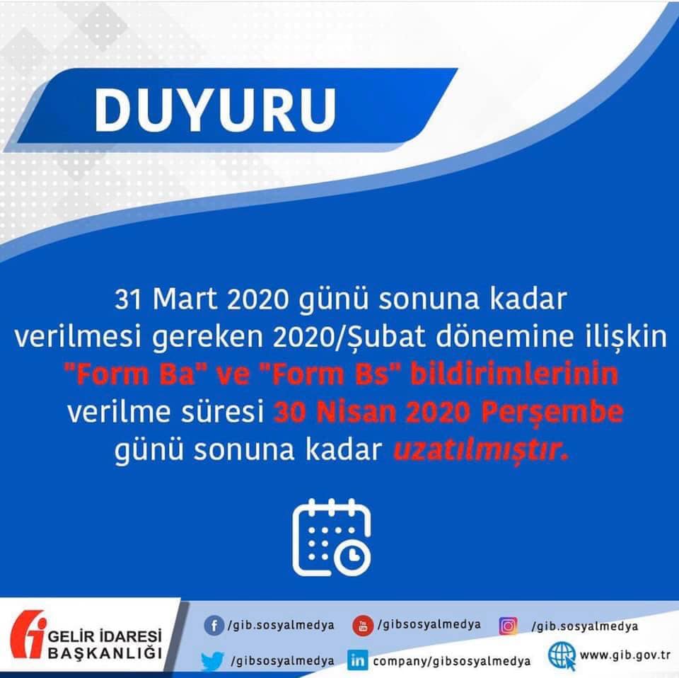 •Form Ba ve Form Bs bildirimleri 30 Nisan 2020