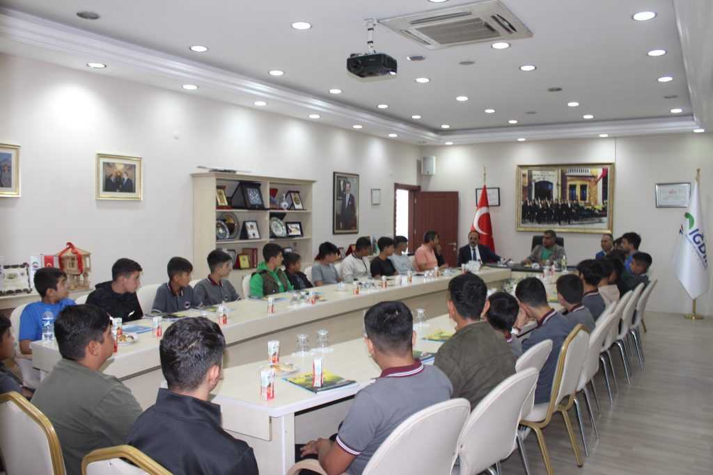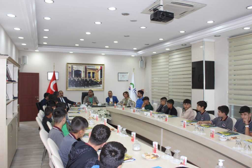 Her yıl Eylül ayı ikinci haftasında kutlanan Ahilik haftası etkinlikleri kapsamında il Ticaret müdürümüz Ender Önal organizasyonunda Endüstri meslek lisesi Yönetici ,Öğretmenleri ve öğrencileri Odamızı ziyaret etti..Yönetim kurulu başkan yardımcısı Ekber Ayaz ,Yönetim kurulu üyesi Mehmet Yıldız ve genel sekreter Gökçen Turan tarafından karşılanan öğrencilerimize odamız yönetim kurulu başkan yardımcısı Ekber Ayaz odamız çalışmaları hakkında genel bilgilendirme yaptı ara eleman yetiştirilmesi hususunda endüstri meslek lisesi mezunlarının ve öğrencilerinin öneminin altını çizen Ayaz önümüzdeki günlerde öğrencilerimize OSB ‘deki firmalar ile stajyer konusunda destek sözü verdi.