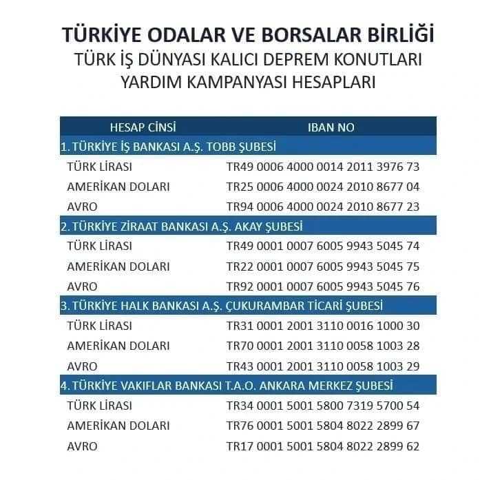 Yardımlaşma ve Dayanışma Duygusunun yoğun olarak yaşandığı bugünlerde, halkımızın da beklentileri doğrultusunda dramatik felaketten etkilenen vatandaşlarımız için her türlü yardım ve desteği sağlamanız inancıyla, nakdi bağışlarınızın anılan hesaba gönderilmesini rica ederiz.