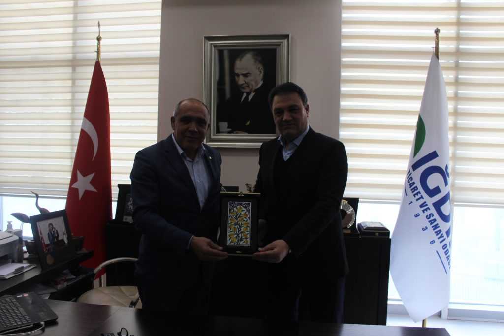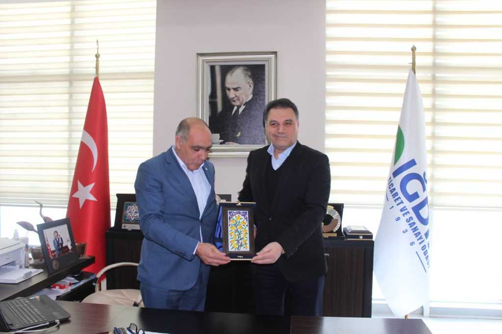 Iğdır üniversitesi Rektörü Prof. Dr. Mehmet Hakkı Alma ve Öğrenci Dekanı Ögr. Gör. Hakan Güngör Odamız yönetim kurulu başkanı Kamil Arslan’ı makamında ziyaret etti.Genel sekreter Gökçen Turan’nın hazır bulunduğu Ziyaret de Doğu Anadolu Kariyer Fuarı (DAKAF’22) ‘na katılım ve Coğrafi işaretli ürünlerle ilgili yapılan ortak çalışmalar değerlendirildi.