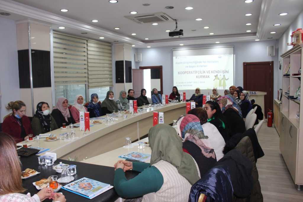 DevamıDetails."Kadın Girişimciliğinde Yol Haritaları, Kooperatifçilik ve Kendi İşini Kurmak" konulu eğitim programı açılışı Odamız toplantı salonunda gerçekleştirildi.. 31 Ocak -04...