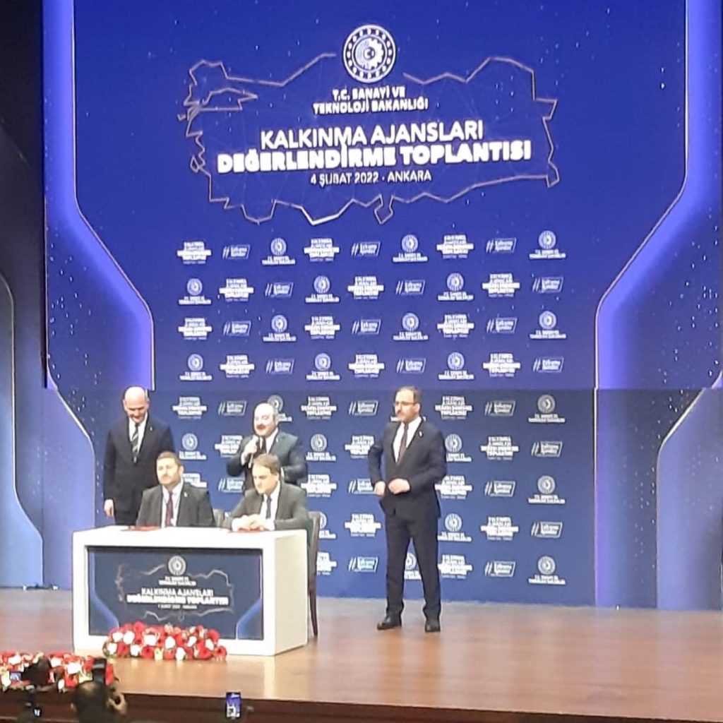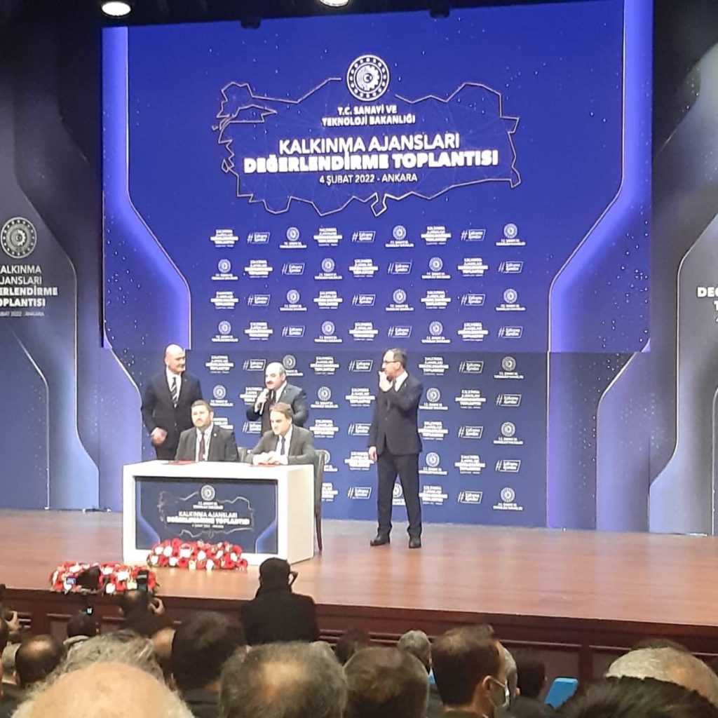 Cumhurbaşkanlığı Külliyesi Millet Kütüphanesi’nde, Kamu kurumları, sivil toplum kuruluşları ve özel sektör arasındaki iş birliğinin geliştirilmesi ve yerel kaynakların etkin kullanımını sağlamak amacıyla bölgedeki kamu ve sivil toplum aktörlerine mali ve teknik destek veren ve sorumlu oldukları bölgenin öncelikli ihtiyaçlarına göre kalkınmayı teşvik edici destek programları yürüten 26 Kalkınma Ajansı’na yönelik “Kalkınma Ajansları Değerlendirme Toplantısı” düzenlendi. Kalkınma ajanslarının hem geçmiş dönem uygulamalarının gözden geçirileceği hem de ilerleyen dönemde ajansların vizyonunun ne olması gerektiğinin tartışılacağı toplantıya, Sanayi ve Teknoloji Bakanı Mustafa Varank, İçişleri Bakanı Süleyman Soylu ve Gençlik ve Spor Bakanı Dr. Mehmet Muharrem Kasapoğlu ve çok sayıda ajans temsilcisi katıldı.Toplantıya odamızı temsilen yönetim kurulu başkanı Kamil Arslan katıldı.