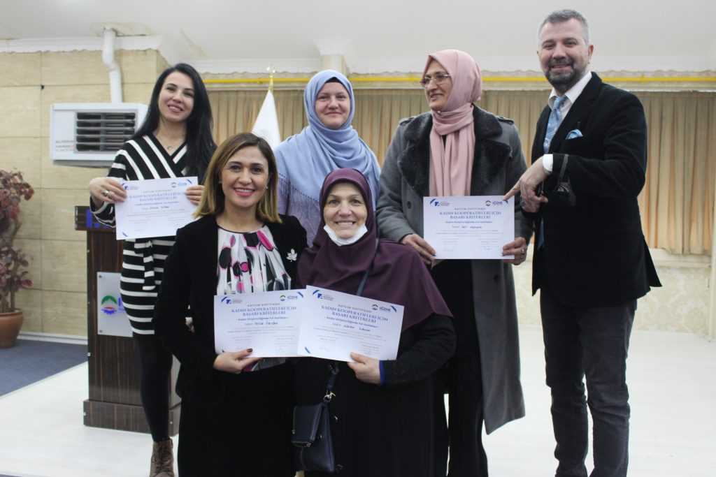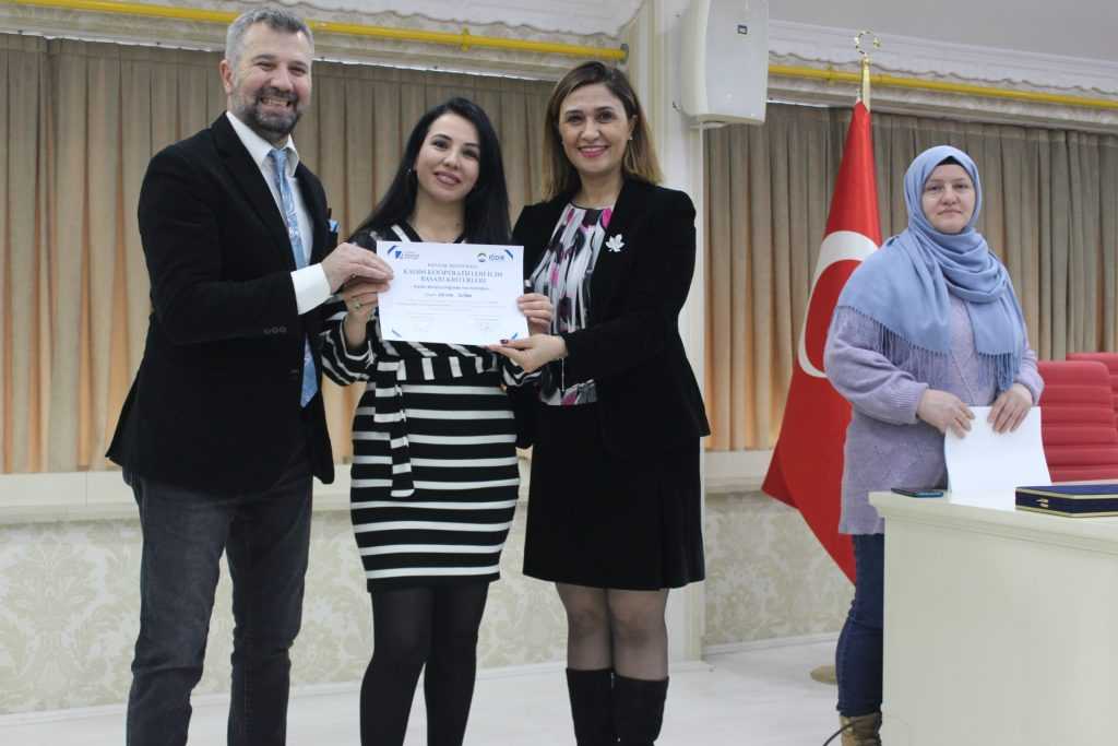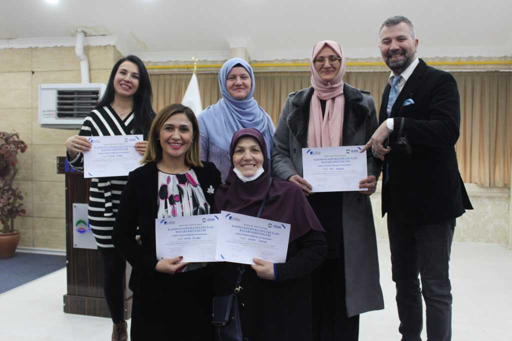 31 ocak -4 Şubat 2022 tarihleri arasında Kadın Girişimciliğinde yol haritaları eğitimlerini başarı ile veren Kobi Danışmanı ve Kooperatifçilik Eğitmeni Cüneyt Örkmez’e teşekkürlerini iletti. Program sonunda eğitim programını başarı ile tamamlayan kadın girişimcilere sertifikaları takdim edildi.