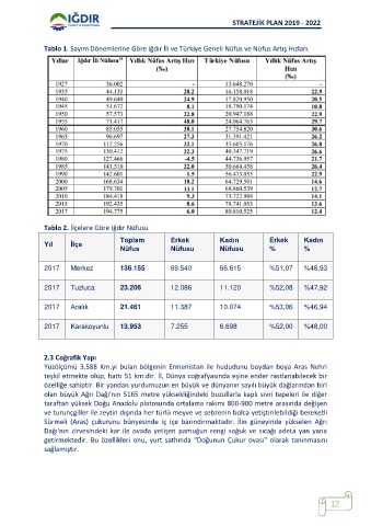 Tablo 2. İlçelere Göre Iğdır Nüfusu