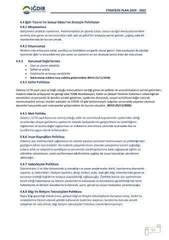 4.4 Iğdır Ticaret Ve Sanayi Odası’nın Stratejik Politikaları