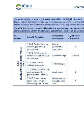 STRATEJİK HEDEF 1.6 BİLGİ İŞLEM TEKNOLOJİLERİ PROSESİNİ İYİLEŞTİRMEK