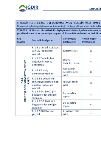 STRATEJİK HEDEF 1.8 KALİTE VE DOKÜMANTAYON PROSESİNİ İYİLEŞTİRMEK