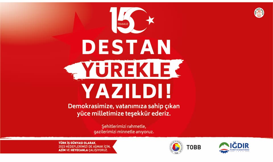 Demokrasimize, vatanımıza sahip çıkan yüce milletimize teşekkür ederiz. Tüm Şehitlerimizi Rahmet, Gazilerimizi Minnetle Anıyoruz.