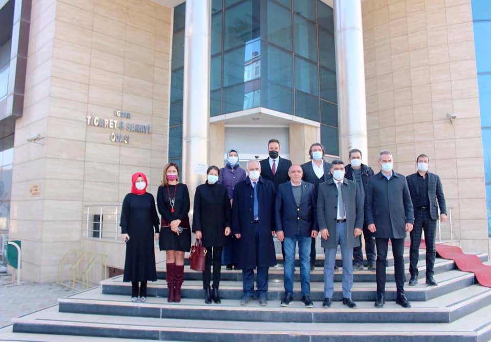 Iğdır Ak Parti il Başkanı Sayın Ali Kemal Ayaz ve parti il yönetim kurulu üyeleri ile birlikte odamız yönetim kurulu Başkanı Kamil Arslan’ı makamında ziyaret etti. Ziyaret de odamız meclis başkanı Tahir Talay, Yönetim kurulu başkan yardımcısı Özcan Akkuş odamız meclis başkan yardımcısı Murat Oba Kadın Girişimciler kurul başkanımız Sunay Mert ve Genel sekreter Gökçen Turan Hazır bulundu. Samimi bir sohbet havasında geçen ziyaret de beraber yapılacak etkinlikler ve lobi çalışmaları ile ilgili istişarede bulunuldu. Ziyaret hatıra fotoğrafı çekimi ile son buldu.