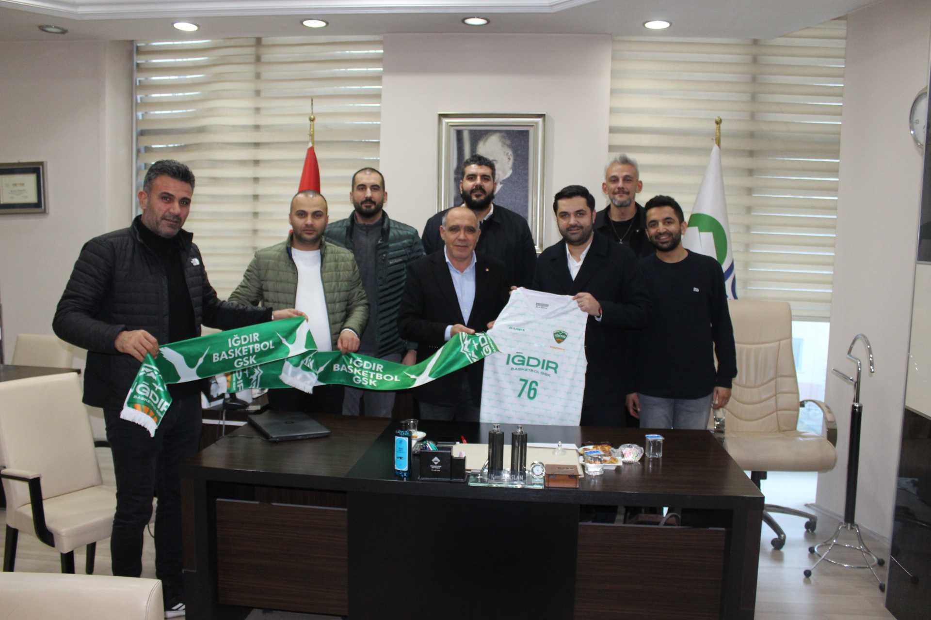 Iğdır Basketbol spor kulübü başkanı Alp Aşırım ve beraberindeki heyet odamız yönetim kurulu başkanı Kamil Arslan’ı makamında ziyaret etti Ziyaret takımın forması ile çekilen hatıra fotoğrafı çekimi ile son buldu