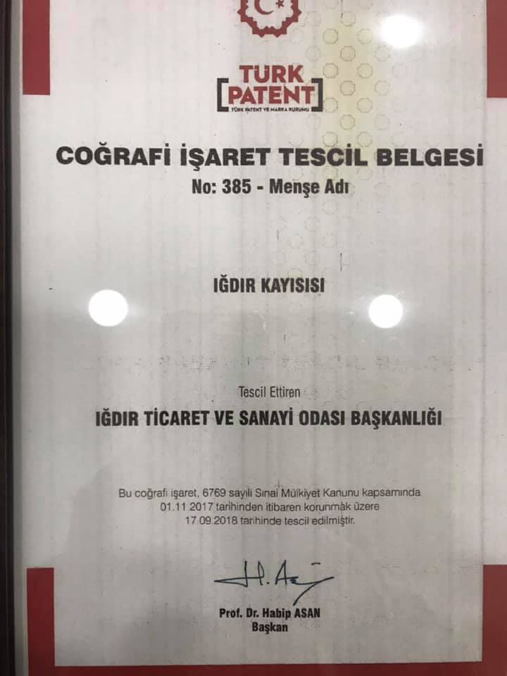 Odamız tarafından coğrafi işareti alınan Iğdır kayısı sertifikasını Aras Doğa Köyü Koordinatörü Erdinç Koşkun ‘ a odamız yönetim kurulu başkanı Kamil Arslan takdim etti.Ziyaret de SGK il müdüremiz Birsen Dursun,OSB müdürümüz Hakan Aras ,SERKA yatırım destek ofisi koordinatörü Gizem Coşkun ,yönetim kurulu başkan yardımcımız Özcan Akkuş ve Genel sekreter Gökçen Turan hazır bulundu.