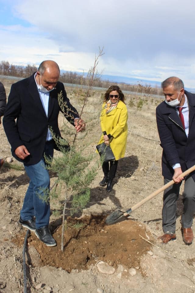 IĞDIR Vakfı tarafından, Ermenistan ile süren 44 günlük savaşta şehit düşen Azerbaycanlı 2783 şehit için hatıra ormanı oluşturdu. Tuzluca ilçesi yolu üzerindeki kent ormanı karşısında yeni oluşturulan ve “Iğdır Vakfı Karabağ Şehitleri Ormanı” adı verilen yeni ormanlık alanda düzenlenen program saygı duruşu ve Türkiye ile Azerbaycan’ın milli marşlarının okunması ile başladı. Fidan dikme törenine Vali Hüseyin Engin Sarıibrahim, Cumhuriyet Başsavcısı Oğuz Şükrü Eren, Azerbaycan Devlet Diaspora Çalışma Komitesi Müsteşarı Dashgin Recabli, Türkiye Masası Sorumlusu Kenan Arif, Adalet Bakanlığı Daire Başkanı ve Iğdır Vakıf Başkanı Özgür İnan Zor, Melekli Belediye Başkanı Eray Coşar, Orman Müdürü Taner Tazegün, Tarım Müdürü Özkan Yolcu, Teknoloji Müdürü Ferdi Gürel, Ticaret Odası Başkanı Kamil Arslan, Sivil Toplum Kuruluş Başkanları ve yöneticiler ile Iğdır halkı katıldı. Törende bir konuşma yapan Vali Sarıibrahim, “Bu topraklarda bizler yaklaşık 19’uncu yüzyıldan itibaren mücadele veriyoruz. Azerbaycan topraklarındaki bu mücadele aslında birinci dünya savaşı itibariyle başlamıştır. O dönemde de Türk milleti yine elinden gelen imkanla Azerbaycan’daki kardeşlerinin yanındaydı. Bu yolda yürürken her zaman iki devletin bir milletin olduğuna inandık. Bugün arkadaşlarımız Iğdır Vakfı’nın çok kıymetli yöneticileri burada o anlayışa çok güzel hizmet eden bir eser ortaya çıkarmıştır. O eser de toprağa fidan dikmektir. Nasıl şehitlerimiz kanlarıyla sulayarak toprağı mübarek ediyorsa, bu topraklara diktiğimiz ağaçlarla umut ediyorum ki Türk Milletinin asırlar boyunca bu topraklarda yaşayacağının nişanesi olur. Aziz şehitlerimizi rahmetle anıyoruz. Aynı zamanda bu topraklardaki varlığımızın ebediyen sürmesi için kardeşliğimizin, ortak davamızın devamını Allah’tan diliyorum” diye konuştu. Iğdır Vakıfı’nın başlattığı “2783 şehit, 2783 fidan” dikimine halkın büyük ilgi gösterdiğini belirten Adalet Bakanlığı Daire Başkanı ve Iğdır Vakıf Başkanı Özgür İnan Zor ise şunları söyledi: “Burası rüzgara dayalı toprak erozyonunun yoğun olduğu bir bölge. Ormanlaştırmaya karar verdik. Bu kararın temelinde vatan sevgisi yatıyor. Vatan sevgisi demek toprağı, milleti, doğayı sevmektir. Vatan uğruna can vermeyi göze alabilmektir. Bunun da en canlı örneğini 2020 yılında Karabağ’da can veren şehitlerimizde gördük. Ruhları şad olsun. Türk İslam beldelerinde vatan müdafaasında şehit olan şanlı ordularımızın mekanları cennet olsun. Bu orman sahasını teşkil ederken Azerbaycan Cumhuriyeti tarafından açıklanan ilk resmi rakamlara göre 2 bin 783 şehidimizin olduğu bilgisini aldık. İnşallah dikeceğimiz 2 bin 783 fidan yeşerir, büyür ve şehitlerimiz için sonsuza dek yaşar. Orman alanımızın yer tahsisi için ilgisini esirgemeyen Orman Müdürü Taner Tazegün’e ve 10 bin fidanla desteklerini hiçbir zaman esirgemeyen Cantürk Alagöz’e sonsuz teşekkürlerimizi sunuyoruz. Allah iki devlet bir millet şiarıyla birlikte hareket etmeyi nasip etsin, kardeşliğimiz sonsuza dek devam etsin.” Dedi. Azerbaycan Devlet Diaspora Çalışma Komitesi Müsteşarı Daşgın Recabli de konuşmasında; “Azerbaycan’ın 44 günlük savaşta yanında duran ve her anı ile ilgilenen Türkiye ye sonsuz teşekkürlerimizi, minnettarlığımızı sunuyoruz. Bu gün bura da bir kez daha şahit olduk ki, “bizler iki devlet bir milletiz.” Buna göre de ifade ediyorum ki, dünya var oldukça bu kardeşliğimizin devam edecektir.” Dedi. Konuşmaların ardından fidan dikimine katılan protokol ve vatandaşlar ellerine kazma kürek alarak 2783 çam fidanını toprakla buluşturdu.