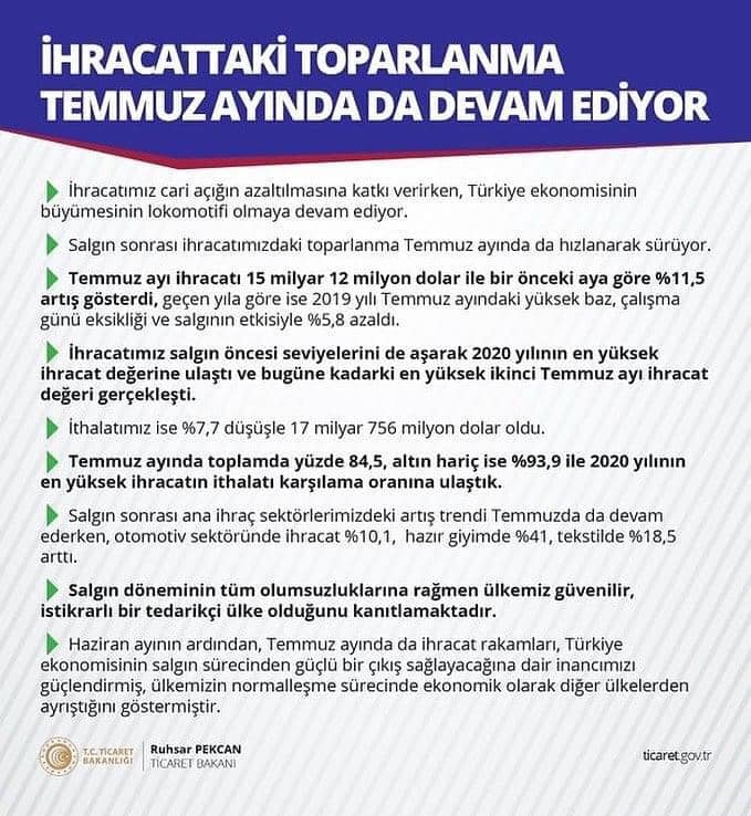 İhracattaki Toparlanma Temmuz Ayında da Devam Ediyor