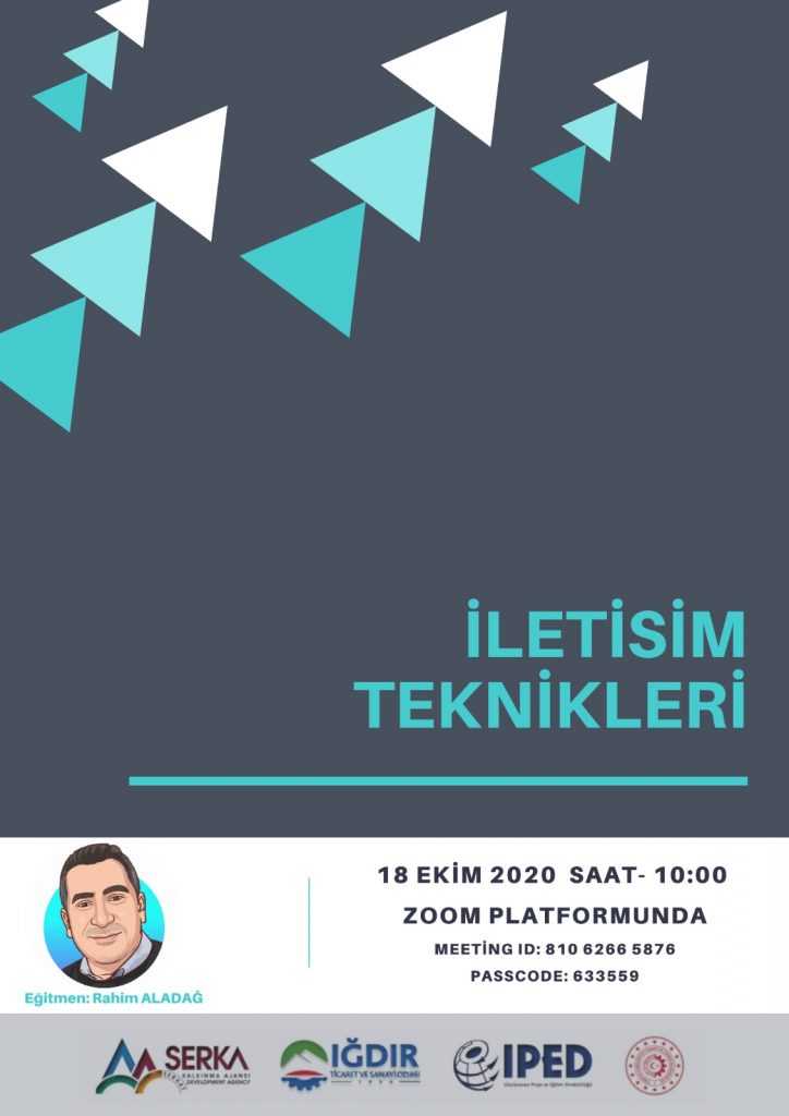 Iğdır Ticaret ve Sanayi Odası tarafınca talep edilen “İletişim Teknikleri Eğitimi” 20.10.2021 tarihinde Rahim Aladağ tarafından verilmiştir. Odamız Genel sekreteri Gökçen Turan başkanlığında online yapılan eğitime tüm personelimiz katıllım göstermiştir.Eğitimin içeriği  aşağıda şekildedir.