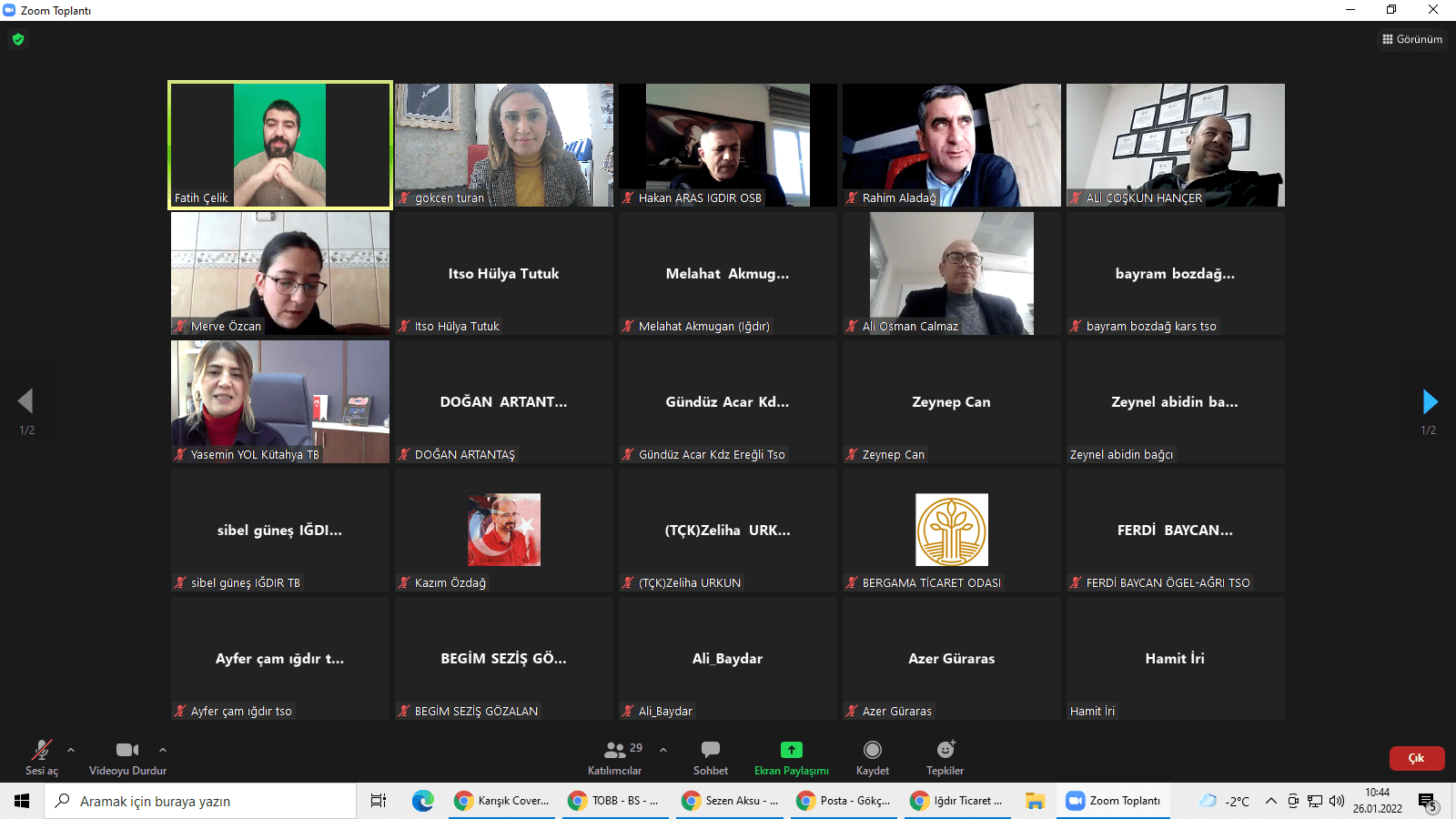 Serhat Kalkınma Ajansı tarafından desteklenen ve Iğdır Ticaret ve Sanayi Odası tarafınca talep edilen “İmaj Oluşturma ve İmaj Yönetme – Etkili Hitabet Sanatı – Beden Dilini Doğru Kullanma” 26.01.2022 tarihinde Fatih Çelik tarafından verilmiştir. Odamız Genel Sekreteri Gökçen Turan başkanlığında interaktif bir şekilde yapılan online yapılan eğitime;