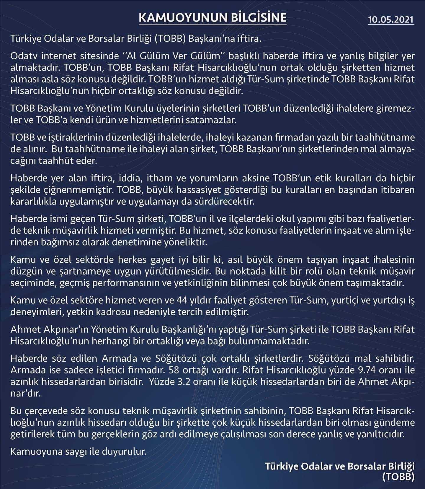 Kamuoyuna duyurulur