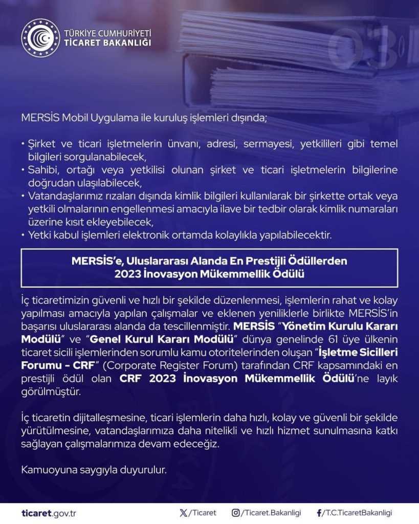 “MERSİS Mobil Uygulama” Hayata Geçti