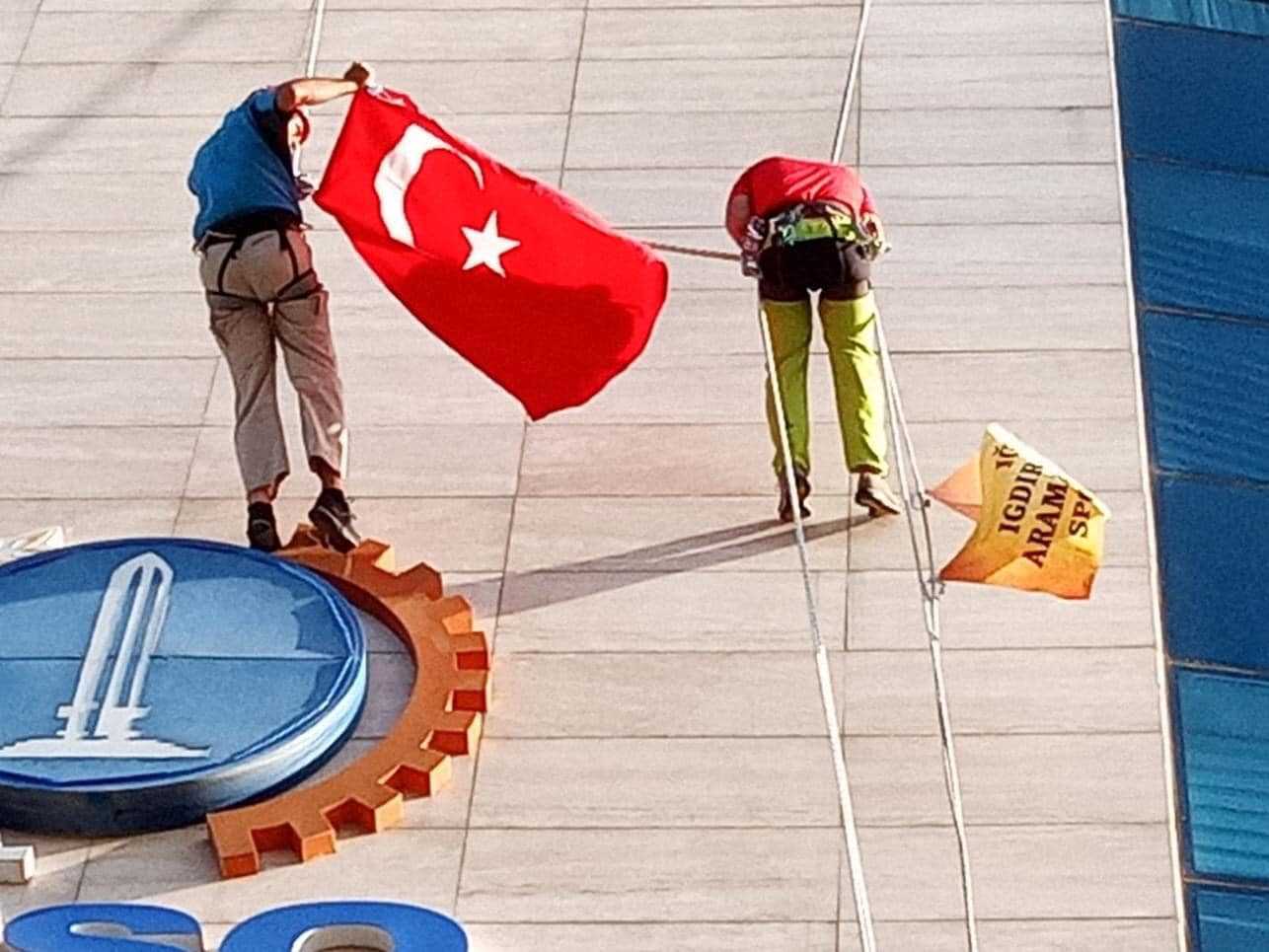 Ağrı Dağı’nın kuzey kanadının da tırmanışa açılması için cam binadan iniş yaptılarIĞDIR Dağcılık Kulübü’nden 4 dağcı, dağcılık sporunu tanıtmak, Ağrı Dağı’nın kuzey kanadının da tırmanışlara açılması için 6 katlı 22 metre yüksekliğindeki Iğdır Ticaret ve Sanayi Odası’nın cam binasının çatısından Türk bayrağı açarak başarılı bir iniş yaptı. Halatlarla inen dağcılar “Gençlerimizi bu sporu yapmaya davet ediyoruz” dedi. Türkiye Dağcılık Federasyonu Antrenörü Şahap Eryılmaz ile Iğdır Dağcılık Kulübü sporcuları, Iğdır Ticaret ve Sanayi Odası’nın cam binasından yapacakları iniş için önce hazırlıklarını tamamladı. Gerekli güvenlik önlemlerini alan sporcular daha sonra Türk bayrağı açarak cam binadan başarıyla iniş yaptı. Türkiye Dağcılık Federasyonu Antrenörü Şahap Eryılmaz, “Dağcılık eğitimli sporcuların yapabileceği bir spor. Bizim amacımız dağcılığın riskli bir spor dalı olmadığını ve eğitimle başarılabileceğini göstermek. Iğdır’da buna ihtiyaç var. Bunun için böyle bir etkinlik düzenledik. Iğdır’da bu tür spor kulüplerinin çok daha fazla olması gerekiyor. Hem Azerbaycan, İran ve Ermenistan, bu bölgede faaliyetlerde bulunuyor ve biz onlara böyle aktivitelerin olduğunu gösterirsek eğitim turizmi bile açılır” dedi.Iğdır Arama Kurtarma Dağcılık Kulübü Başkanı aynı zamanda odamız meclis üyesi Murat Kılıçlı gençleri spor yapmaya davet ettiklerini belirterek, yeni tamamladıkları kampta 18 sporcunun eğitimlerini tamamladığını söyledi. Ağrı Dağı’nın dağcılık sporu için iyi değerlendirilmesi gerektiğini ifade eden Iğdır Gençlik ve Spor İl Müdürü Yusuf Çebi de “Her geçen gün daha fazla dağcıya kavuşacağız, Iğdır’ın muhteşem bir doğası var. Dağcılık turizminde her türlü dağları mevcut. Ağrı Dağı burada. Buranın iyi değerlendirilmesi gerekiyor. Türkiye Dağcılık Federasyonu’nun bölgemizde çok ciddi çalışmaları var. 30 Ağustos Zafer Bayramı’nda burada bir çıkış planlamamız var. Böylelikle Iğdır, dağcılık turizmi içerisinde hak ettiği yeri alacaktır” diye konuştu.AĞRI DAĞI’NIN KUZEY KANADI TIRMANIŞLARA AÇILMALISporcuları izleyen ve ev sahipliği yapan Iğdır Ticaret ve Sanayi Odası Başkanı Kamil Arslan, dağcılık sporunun geliştirilmesi için çalışmaları desteklediklerini söyledi. Ağrı Dağı’nın kuzey kanadının tırmanışlara açılması için 2008’den beri girişimlerinin sürdüğünü belirten Başkan Arslan, “Belli yüksekliklerde barınaklar yaptık. Mihmandar bulma konusunda sıkıntımız var. 2 yıl eğitimli ve belgeli olması istenen mihmandarlar için bölgemizde uygun isimler bulamadık. İnşallah Türkiye Dağcılık Federasyonu’nun desteğiyle kuzey kanadının tırmanışlara açılması Ağrı Dağı’nın önemli bir adım olacak. Yüzde 64’ü ilimiz sınırları içerisinde olan Ağrı Dağı’na Iğdır’dan da tırmanışlar gerçekleştirilecek. Kentimize büyük bir Ağrı Dağı maketi de yapmak istiyoruz. Amacımız insanlarımızın ilgisini çekebilmek” dedi