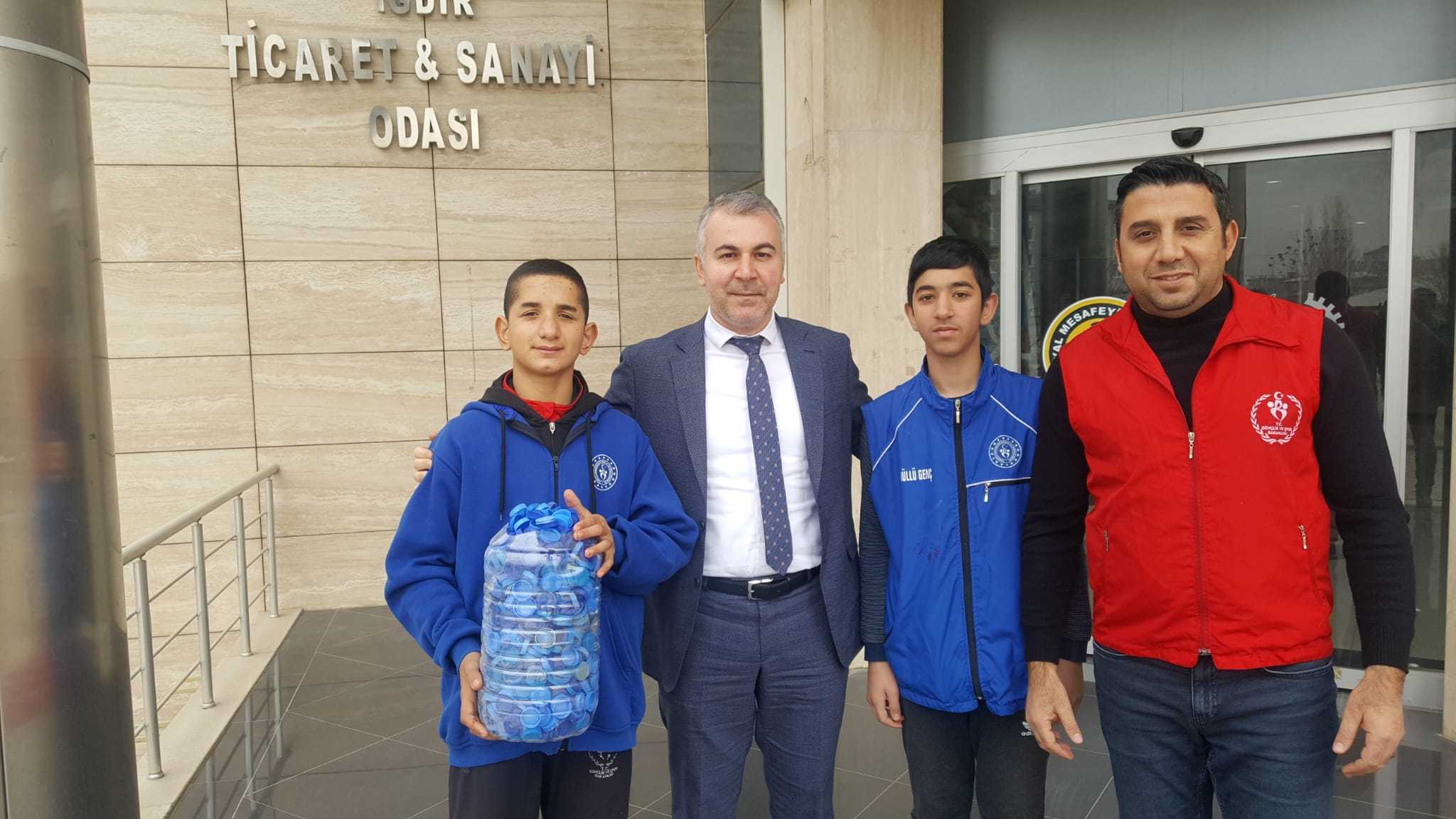 Engelli vatandaşlara tekerlekli sandalye alınması için odamız personeli Doğan Artantaş topladığı kapakları teslim ederek duyarlılık göstererek örnek bir davranış sergiledi
