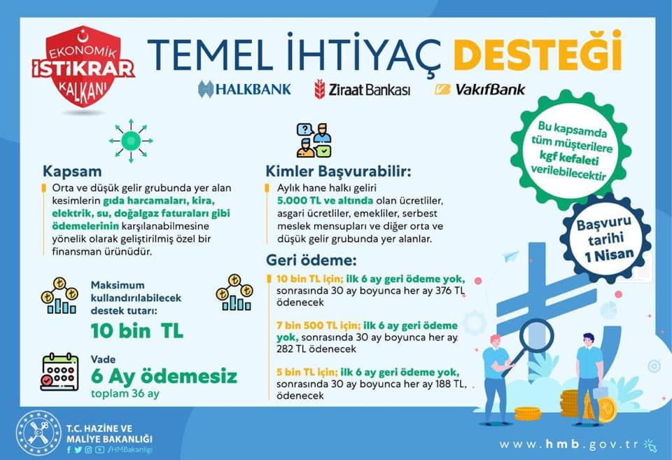 Ekonomik İstikrar Kalkanı kapsamında Kamu Bankalarından Temel İhtiyaç Desteği Kredisi..!