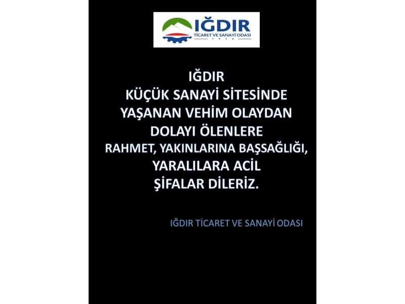 KÜÇÜK SANAYİ SİTEMİZDE YAŞANAN VEHİM OLAYDAN DOLAYI BAŞSAĞLIĞI DİLEKLERİMİZ