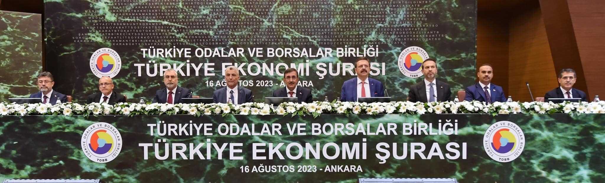 “Yönetim Kurulu Başkanımız Kamil Arslan Birlik Başkanımız M.Rifat Hisarcıklıoğluev sahipliğinde, Cumhurbaşkanı Yardımcısı Sn. Cevdet Yılmaz başkanlığında, Hazine ve Maliye Bakanı Sn. Mehmet Şimşek, Ticaret Bakanı Sn. Ömer Bolat, Çalışma ve Sosyal Güvenlik Bakanı Sn. Prof. Dr. Vedat Işıkhan, Tarım ve Orman Bakanı Sn. İbrahim Yumaklı, Sanayi ve Teknoloji Bakanı Sn. Mehmet Fatih Kacır, Enerji ve Tabii Kaynaklar Bakanı Sn. Alparslan Bayraktar ile Oda/Borsa başkanlarının katılımıyla gerçekleşen “Türkiye Ekonomi Şurası”na katıldı.