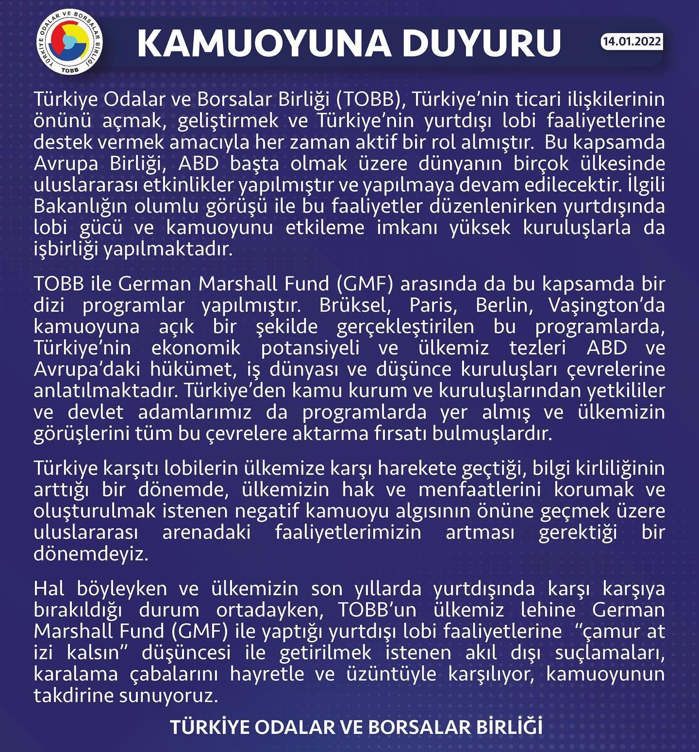 Türkiye Odalar ve Borsalar Birliği’nden (TOBB) kamuoyuna duyuru…