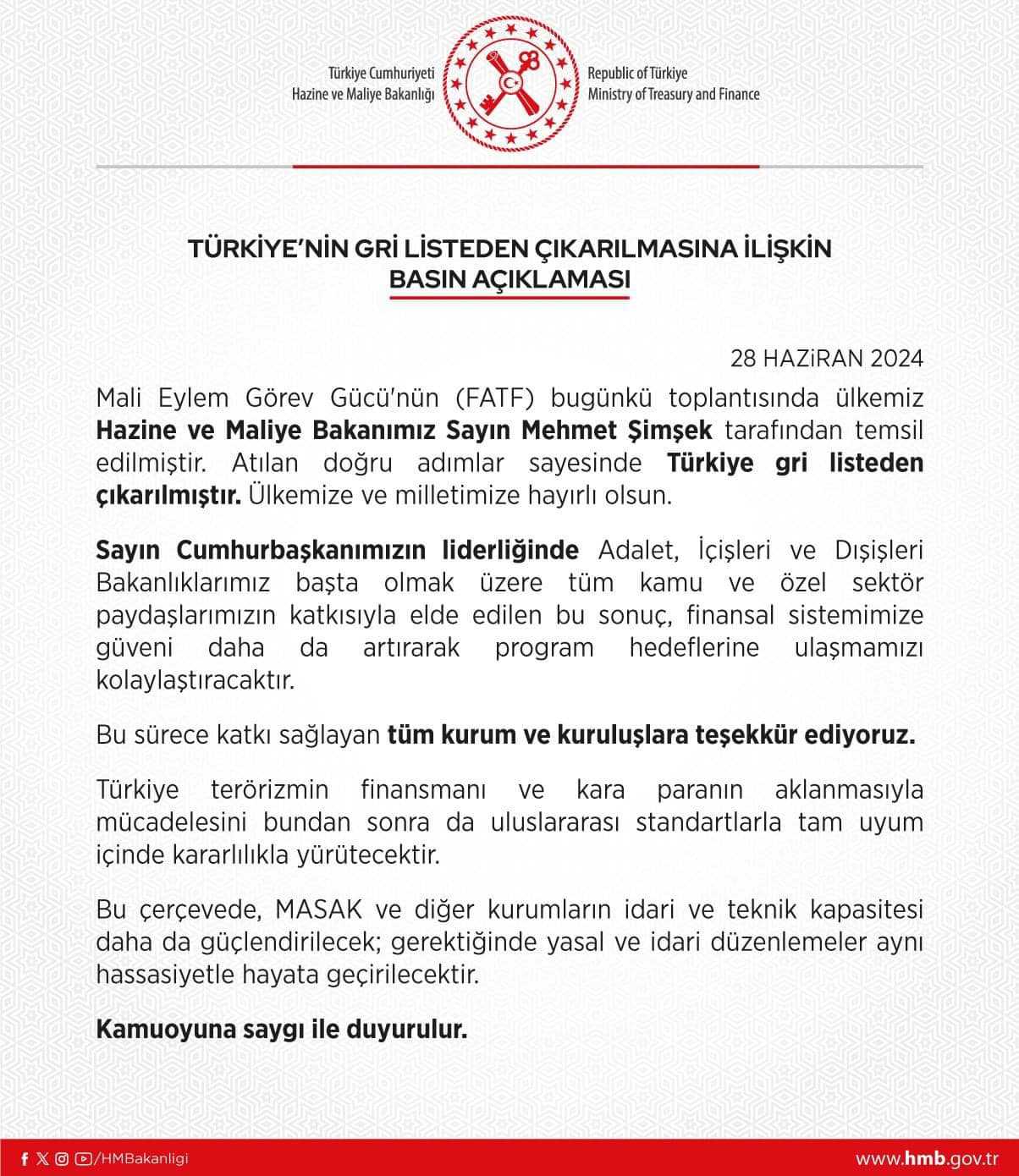 Türkiye’nin Gri Listeden Çıkarılmasına İlişkin Basın Açıklaması Detaylar için,