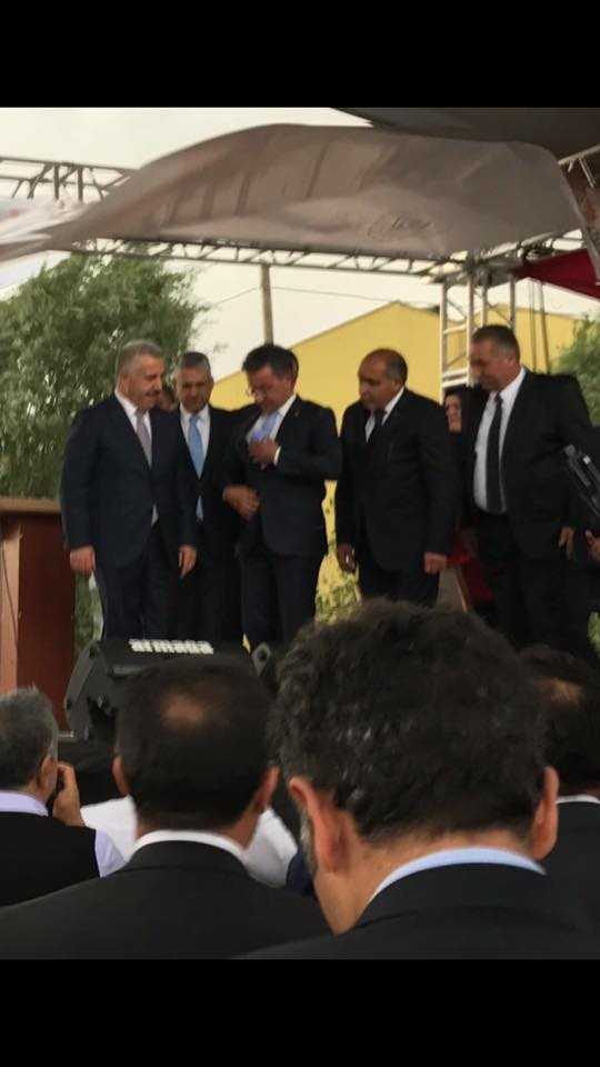 Arslan’a Iğdır Ticaret Borsası Başkanı Serhat Kumtepe tarafından tarafından tablo hediye edilmesinin ardından, temel atımı için butona Bakan Arslan,Iğdır valisi Ahmet Turgay Alpman,Milletvekili Nurettin Aras,ve Odamız Yönetim kurulu Başkanı Kamil Arslan temel için butona bastılar..