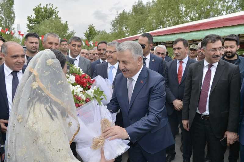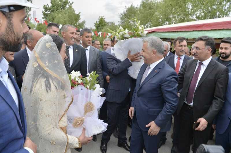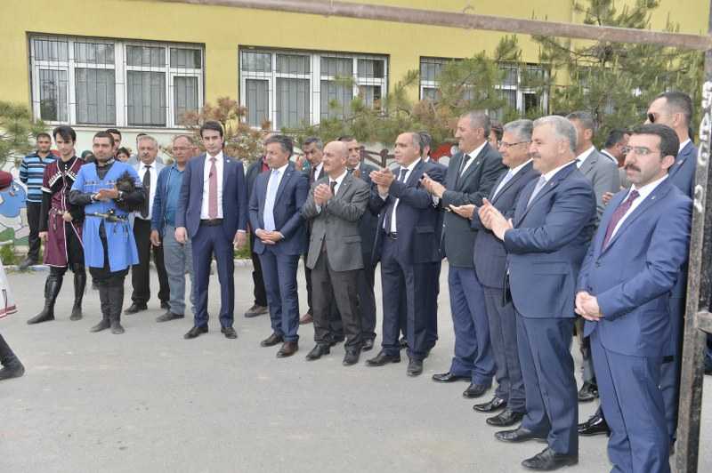 Tören alanında Öğrencilerin Kafkas dansı ile karşılanan Arslan, kendisine takdim edilen çiçeği kız öğrencilere verdi.