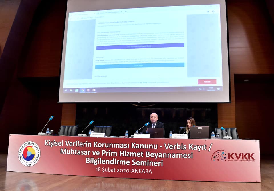 Oda ve borsaların genel sekreterleri ile muhasebe ve insan kaynaklarından sorumlu personelin katılımı ile 18.02.2020 tarihinde Türkiye Odalar ve Borsalar Birliği’nde (TOBB) tam gün süreli Kişisel Verilerin Korunması Kanunu – VERBİS’e kayıt eğitimi ile Muhtasar ve Prim Hizmet Beyannamesi Eğitimi düzenlendi. Eğitime odamızı temsilen odamız genel sekreteri Gökçen Turan katıldı