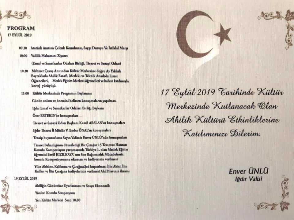 IĞDIR valiliği Ticaret il müdürlüğü Organizasyonunda gerçekleşecek olan Ahilik Haftası etkinliklerinde odamızın ikram edeceği Ahilik pilavı ikramına tüm üyelerimizi bekliyoruz....