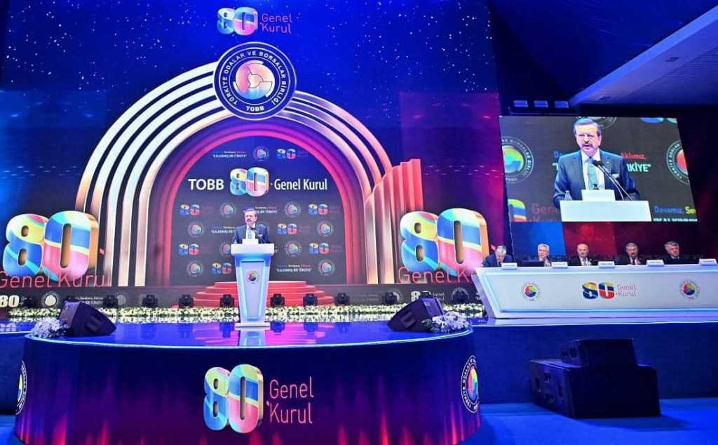Türkiye Odalar ve Borsalar Birliği 80. Genel Kurulu kapsamında 15 Mayıs 2024 Çarşamba günü TOBB Birlik Merkezinde Cumhurbaşkanı Recep Tayyip Erdoğan’ın teşrifleri ile TOBB Başkanı M. Rifat Hisarcıklıoğlu’nun ev sahipliğinde düzenlendi. Cumhurbaşkanı Recep Tayyip Erdoğan’ın beraberinde törene Çalışma ve Sosyal Güvenlik Bakanı Vedat Işıkhan, Aile ve Sosyal Hizmetler Bakanı Mahinur Özdemir Göktaş, Ticaret Bakanı Ömer Bolat, Tarım ve Orman Bakanı İbrahim Yumaklı, Gençlik ve Spor Bakanı Osman Aşkın Bak ile Sanayi ve Teknoloji Bakanı Mehmet Fatih Kacır katılım sağladı. TOBB camiasına ve ülke ekonomisine 10-20-30 yıl ve üzerinde sürede hizmette bulunan delegelere Hizmet Şeref Belgesi Takdimi düzenlenen törende verildi.TOBB’a bağlı 365 Oda ve Borsanın Yönetim Kurulu Başkanları, Meclis Başkanları, TOBB Delegeleri ve Genel Sekreterlerinin katıldığı programa Iğdır Ticaret ve Sanayi Odasını temsilen Yönetim Kurulu Başkanı ve TOBB Genel Kurul Delegesi Kamil Arslan Meclis Başkanı Tahir Talay TOBB Genel Kurul Delegesi Önder Malgaz , TOBB Iğdır Genç Girişimciler Kurulu Başkanı Uğur Artantaş ile Genel Sekreter Gökçen Turan katılım sağladı.