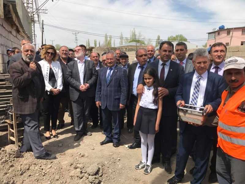 Vali Alpman ve Emniyet Müdürü Çevik Beton mikserinin düpmesine basarak caminin temeli attı.