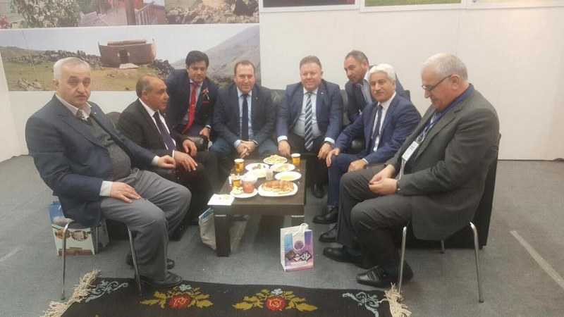 Iğdır Kültür ve Turizm Müdürlüğünün Iğdır, Ağrı, Ardahan illeri ile birlikte kurmuş olduğu standı ATO Congresium Fuar ve Kongre Merkezi’nde yerini aldı. Odamız yönetim kurulu Başkanı Kamil Arslan bölge oda başkanları ile birlikte Iğdır standını ziyaret ederek 7 ülkeden 42 şehir, 220 katılımcının katıldığı 26 Mart Pazar günü sona erecek olan fuarda ilimiz Elması, patlıcan reçeli, nabatı, kaysisi, lepesi, sarı kökü, sirapı, kaşar peyniri, balı ve tüm zenginlikleri tanıtılmaktadır. Tüm Iğdırlı hemşehrilerimizi bekliyoruz” dedi.