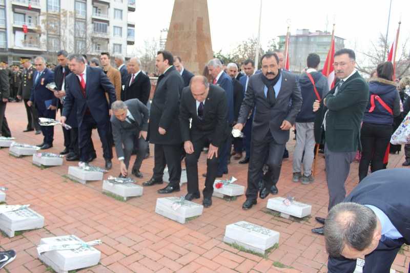 Şehitler Günü ve Çanakkale Zaferi’nin 102. yıl dönümü Atatürk Caddesi Zübeyde Hanım bulvarında Atatürk büstüne, Mehmet Çavuş Anıtına çelenklerin konulması ve çeşitli etkinliklerle ile anıldı.