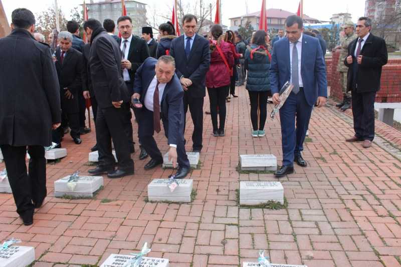 Ardından Şehit Mehmet Çavuş anıtında temsili mezarları ziyaret eden katılımcılar, dualar okuyarak, mezarlara karanfiller bıraktı. Iğdır Valisi Ahmet Turgay Alpman, Şehitlik defterine şunları yazdı: ”Çanakkale bin yıllık tarihimizin her anına damga vuran istiklal ve istikbalimiz konusundaki kararlılığımızın,iman gücünün, çok büyük fedakarlıklarla bir kez daha teyit edildiği yerdir. Herkes iyi bilmelidir ki aziz şehitlerimizin kanlarıyla suladıkları ve bizlere emanet ettikleri bu kutsal vatan toprakları bugüne kadar olduğu gibi bundan sonrada Türk milleti tarafından en kutsal emanet olarak korunacaktır. Bütün şehitlerimize Allah rahmet eylesin”