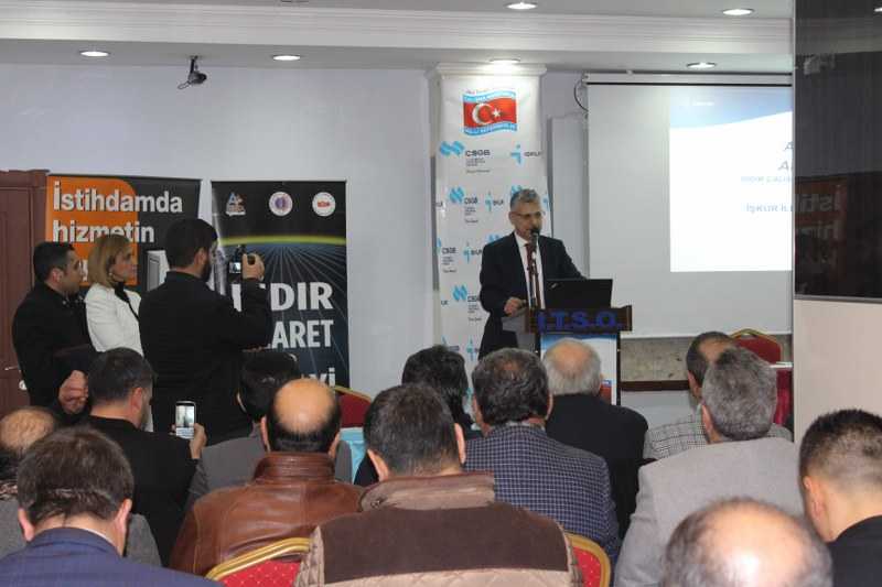 Sayın Cumhurbaşkanımızın çalışma hayatında milli seferberlik kapsamında Bilgilendirme ve Iğdır ilimizin işverenlerince katılımının sağlanması ve taahütlerin alınmasına yönelik toplantı yüze yakın üyemizin katılımı ile gerçeleşti.Toplantı sayın valimiz Ahmet Turgay Alpman başkanlığında SGK il müdürümüz Emin Öztürk ve İşkur il Müdürü Abdullah Can'ın sunumuyla devam etti odamız yönetim kurulu başkanı Kamil Arslan üyelerimize yönelik yapmış olduğu konuşmada toplantı sırasında dağıtılan formlarda taahütlerin belirtilmesini ve Iğdır'a yakışır bir istihdam taahüdü ile Milli istihdam seferberliğine e katkıda bulunmamız gerektiğini belirtti.