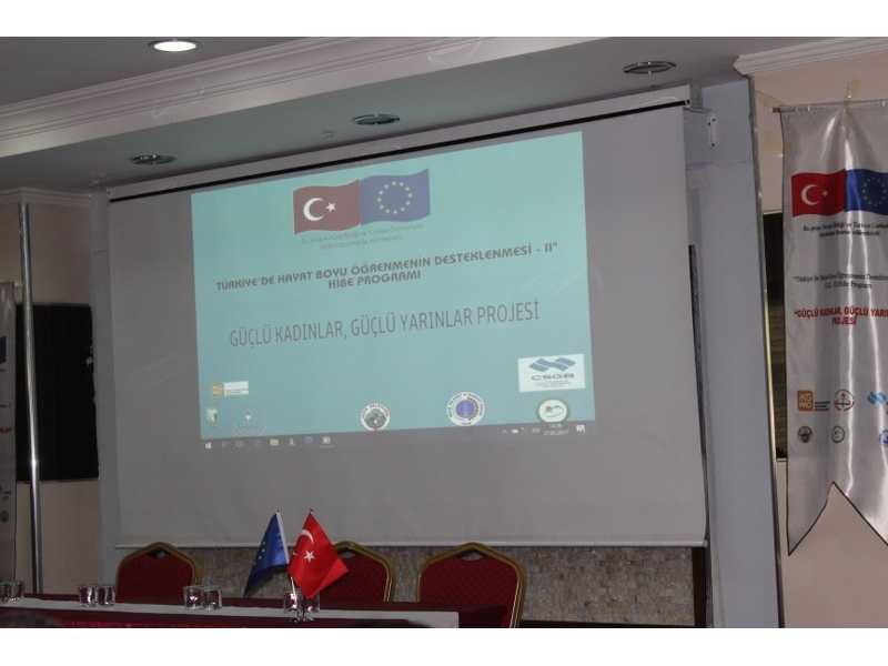 Güçlü Kadınlar Güçlü Yarınlar Projesi yetkililerinden Çiğdem Yılmaz’ın açılış konuşmasından sonra proje tanıtımı , benim adım kadındır ve bir başarı öyküsü slaytı izlendi.