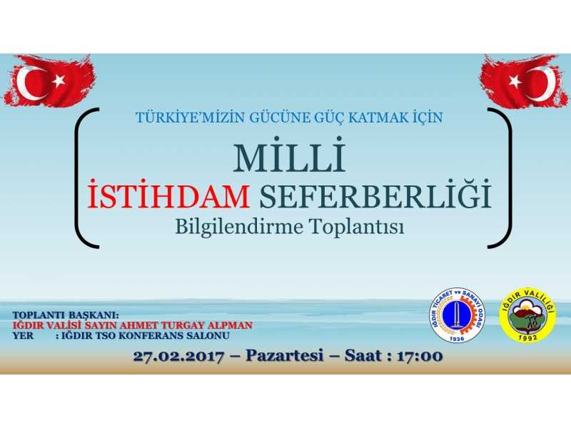 ÇALIŞMA HAYATINDA MİLLİ SEFERBERLİK PROGRAMI TOPLANTISI YAPILDI. Tarih; 2017.03.01 Sayın Cumhurbaşkanımızın çalışma hayatında milli seferberlik kapsamında Bilgilendirme ve Iğdır ilimizin...