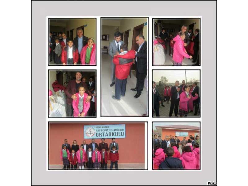 ITSO Yönetim Kurulu Başkanı Kamil Arslan "Geçtiğimiz günlerde öğrencilerimizin okul forması tedarikini gerçekleştiren İstanbul'da tekstil firması olan ve Iğdır'da 300 kişiye de iş imkanı sağlayan iş adamı Murat Bekem üyemizin göndermiş olduğu montları Sayın Valimiz Ahmet Turgay Alpman' nın katılımıyla öğrencilerimize giydirdik. Önümüzdeki süreç içerinde yine okulumuzun gereksinimlerini gidereceğiz."dedi.