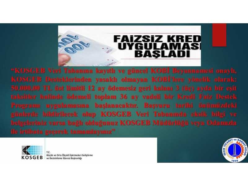 KOSGEB'DEN FAİZSİZ KREDİ DESTEĞİ Tarih; 2017.01.03