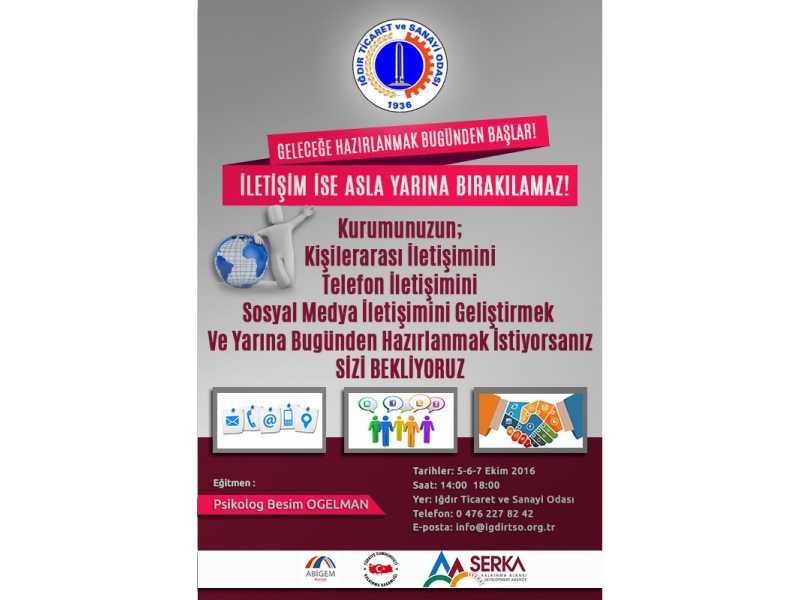 IĞDIR TİCARET VE SANAYİ ODASINDA EĞİTİM SEFERBERLİĞİ BAŞLIYOR!!!! TÜM ÜYELERİMİZ 5/6/7 EKİM 'DE ODAMIZ KONFERANS SALONUNDA VERİLECEK OLAN ÜCRETSİZ SERİFİKALI EĞİTİM PROGRAMIMIZA DAVETLİDİR…