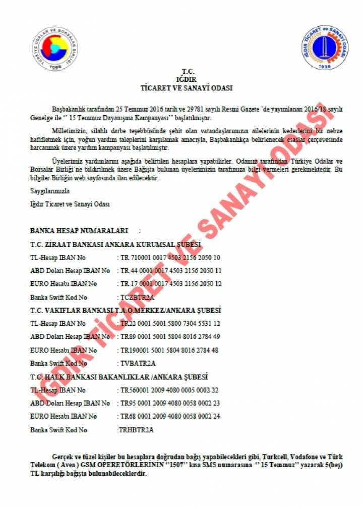 07/08/2016 tarihli Demokrasi mitinginde Iğdır Ticaret ve sanayi Odası üyeleri ve personeli aileleriyle birlikte yerini aldı..